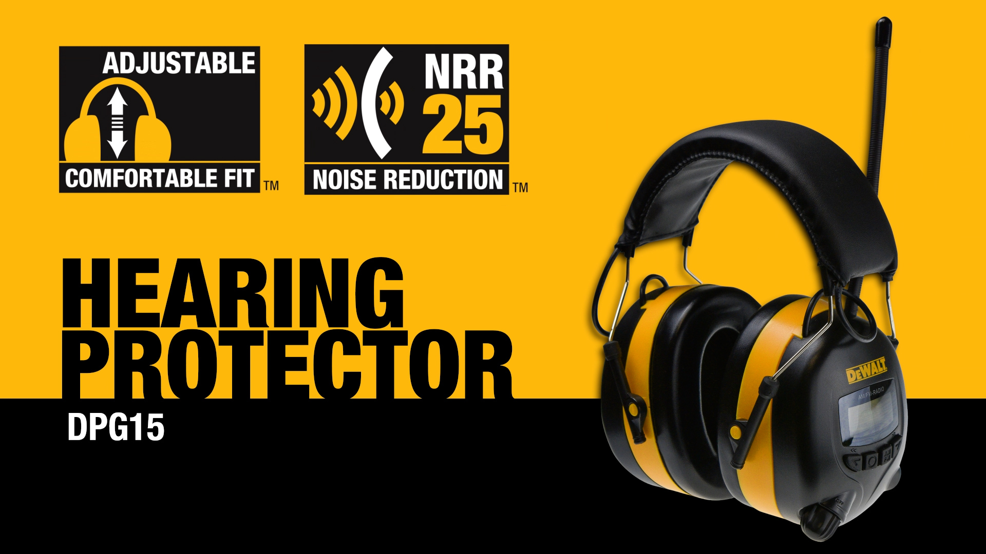 The DEWALT DPG15 Earmuff with Digital AM/FM radio includes an LCD display with 8 radio station presets. Use with your favorite audio device.