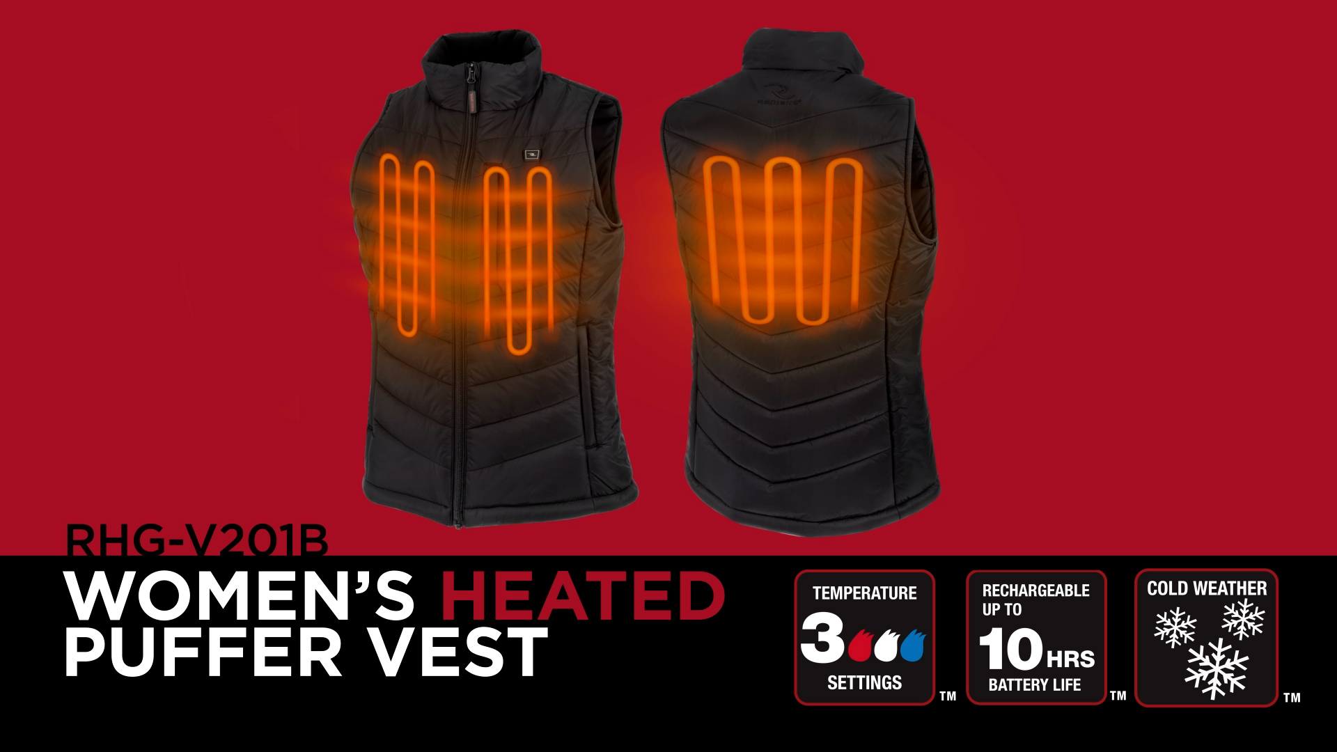 The Radians RHG-V201 is our women's heated puffer vest that provides hours of warmth and comfort in chilly and cold conditions. Its battery-powered system delivers up to ten hours of heat with three adjustable heat settings to customize your warmth. The quilted outer shell is made of durable nylon with a taffeta liner, providing a lightweight yet wind-resistant high performance heated vest. There are two lower hand warmer pockets for additional storage and an internal pocket for the rechargeable 7.4V battery. Stylish, comfortable, functional, and durable, it's the perfect choice to keep you warm at work, sporting events, and outdoor adventures.