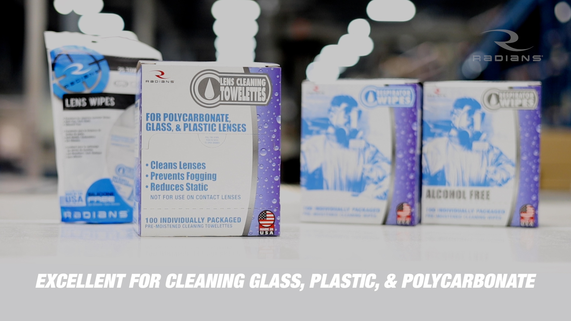 Radians Made in the USA Respirator Wipes with 70% IPA will help keep your respirator mask clean. Each pre-moistened towelette is saturated with a 70% IPA cleaning solution. Plus, they easily clean grease and oil from masks too. The wipes are individually wrapped, so workers can conveniently carry them in their pockets for fast and easy cleaning of rubber respirator facepieces. They can also be used to wipe down other frequently used personal protective equipment. Packaged in boxes of 100 with a dispenser cut-out for easy grabbing, the boxes can be strategically placed throughout your plant or warehouse to encourage daily cleaning of respirator masks and other high touch PPE items. Once opened, the wipe should be used on the respirator immediately as the 70% alcohol mixture evaporates quickly. Avoid contact with eyes.